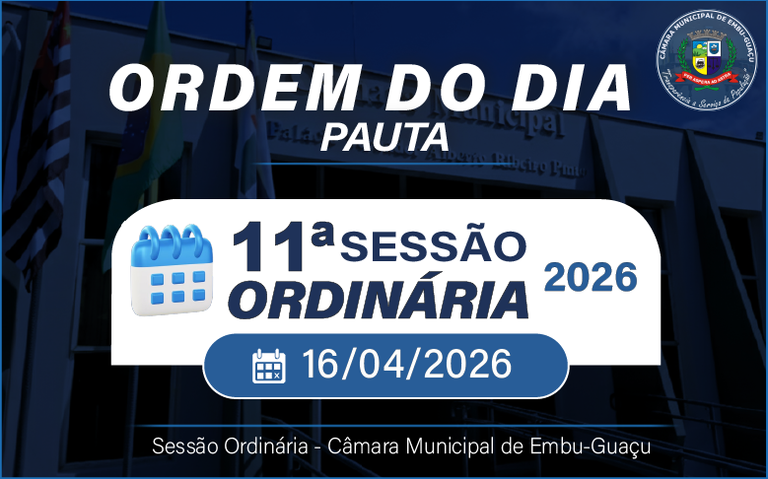 ORDEM DO DIA da 11ª Sessão Ordinária, que será realizada em 16 de abril de 2026, às 10h00min.